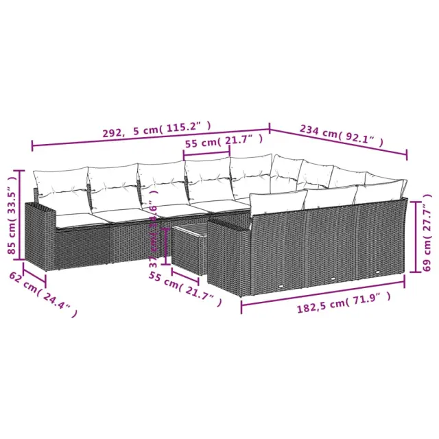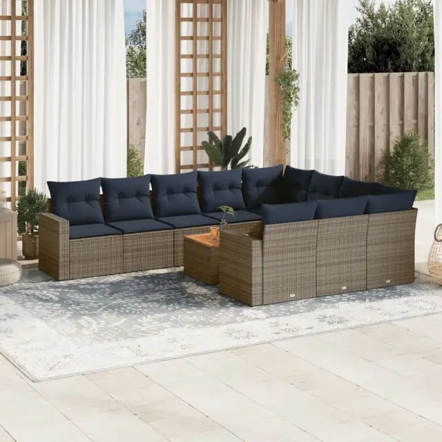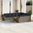 vidaXL Vrtna sedežna garnitura 11-delna z blazinami siv poli ratan