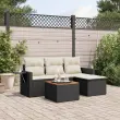 vidaXL Vrtna sedežna garnitura 5-delna z blazinami črn poli ratan