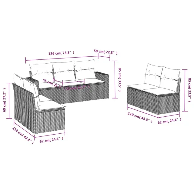 Ta vrtna sedežna garnitura je popoln dodatek za vaše dvorišče, teraso ali verando, saj zagotavlja udoben in vabljiv prostor za klepet z družino in prijatelji ali preprosto za sprostitev in uživanje na prostem.