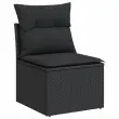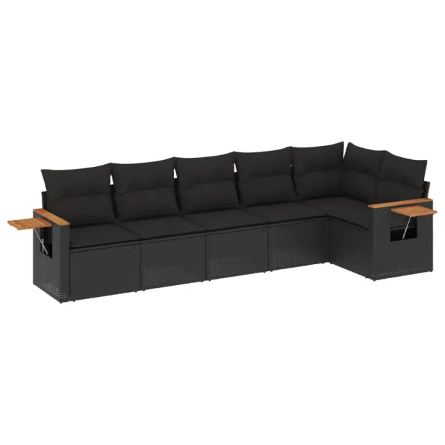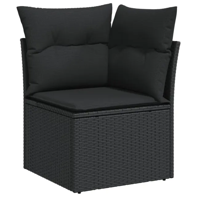 Ta vrtna sedežna garnitura je popoln dodatek za vaše dvorišče, teraso ali verando, saj zagotavlja udoben in vabljiv prostor za klepet z družino in prijatelji ali preprosto za sprostitev in uživanje na prostem. Vzdržljiv material: PE ratan, znan tudi kot poli ratan, je močan sintetični material, ki zahteva malo vzdrževanja in je videti kot naravni ratan. Je lahek, enostaven za čiščenje in se zaradi svoje vzdržljivosti in odpornosti na vremenske vplive pogosto uporablja za zunanje pohištvo.Priročna stranska mizica: To zunanje pohištvo ima zložljivo stransko mizico s pnevmatsko vzmetjo na naslonjalih za roke, ki zagotavlja priročen prostor za shranjevanje potrebščin na dosegu roke.Prevleko je mogoče odstraniti in oprati: Te sedežne blazine imajo odstranljive prevleke za lažje pranje in vzdrževanje.Modularna zasnova: Ta komplet zunanjega pohištva ima modularno zasnovo, zaradi česar je popolnoma prilagodljiv in enostaven za premikanje, tako da lahko zunanjo garnituro postavite kakor koli želite. Dobro je vedeti:Če želite, da vaše zunanje pohištvo ostane lepo, vam priporočamo, da ga zaščitite z vodoodporno prevleko.Maksimalna nosilnost (na sedež): 110 kgUV-odpornoPlastične nastavljive nogePotrebno sestavljanje: DaKotni sedež:Barva: ČrnaMaterial: PE ratan, jeklen okvir s prašnim premazomDimenzije: 62 x 62 x 69 cm (Š x G x V)Velikost sedeža: 55 x 55 cm (Š x G)Višina sedeža, merjena od tal: 37 cmSrednji sedež:Barva: ČrnaMaterial: PE ratan, jeklen okvir s prašnim premazomDimenzije: 55 x 62 x 69 cm (Š x G x V)Velikost sedeža: 55 x 55 cm (Š x G)Višina sedeža, merjena od tal: 37 cmKavč z naslonjali za roke:Barva: ČrnaMaterial: PE ratan, prašno premazano jeklo, trden akacijev les z oljnim premazomDimenzije: 62/85 x 62 x 69 cm (Š x G x V)Velikost sedeža: 55 x 55 cm (Š x G)Višina sedeža, merjena od tal: 37 cmVišina naslonjal za roke od tal: 55 cmŠirina naslonjala za roke: 6 cmVelikost stranske mizice: 24,5 x 23,5 cm (D × Š)Blazina:Barva: ČrnaMaterial prevleke: Tkanina (100 % poliester)Polnilo sedežne blazine: PenaPolnilo hrbtne blazine: bombažna vlaknaDimenzije sedežne blazine: 55 x 55 x 3 cm (Š x G x D)Dimenzije hrbtne blazine: 55 x 45 x 13 cm (D x Š x D)Paket vsebuje:1 x Kotni sedež3 x Srednji sedež2 x Kavč z naslonjali za roke7 x Hrbtna blazina6 x Sedežna blazina s snemljivo pralno prevleko 3226825