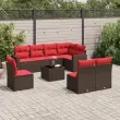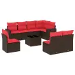 vidaXL Vrtna sedežna garnitura 9-delna z blazinami rjava poli ratan