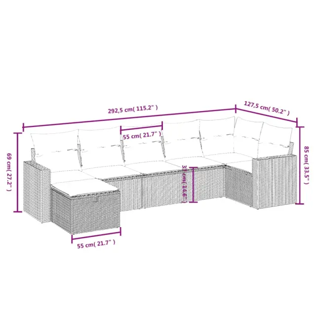 Ta vrtna sedežna garnitura je popoln dodatek za vaše dvorišče, teraso ali verando, saj zagotavlja udoben in vabljiv prostor za klepet z družino in prijatelji ali preprosto za sprostitev in uživanje na prostem. Vzdržljiv material: PE ratan, znan tudi kot poli ratan, je močan sintetični material, ki zahteva malo vzdrževanja in je videti kot naravni ratan. Je lahek, enostaven za čiščenje in se zaradi svoje vzdržljivosti in odpornosti na vremenske vplive pogosto uporablja za zunanje pohištvo.Udobno sedenje: To zunanje pohištvo z debelo oblazinjenimi blazinami zagotavlja udobno sedenje.Prevleko je mogoče odstraniti in oprati: Te sedežne blazine imajo odstranljive prevleke za lažje pranje in vzdrževanje.Robusten in stabilen okvir: Prašno barvan jekleni okvir zagotavlja, da je vrtno pohištvo močno in stabilno za vsakodnevno uporabo na prostem.Modularna zasnova: Ta komplet zunanjega pohištva ima modularno zasnovo, zaradi česar je popolnoma prilagodljiv in enostaven za premikanje, tako da lahko zunanjo garnituro postavite kakor koli želite. Dobro je vedeti:Če želite, da vaše zunanje pohištvo ostane lepo, vam priporočamo, da ga zaščitite z vodoodporno prevleko.Maksimalna nosilnost (na sedež): 110 kgUV-odpornoPotrebno sestavljanje: DaKotni sedež:Barva: RjavaMaterial: PE ratan, jeklen okvir s prašnim premazomDimenzije: 62 x 62 x 69 cm (Š x G x V)Velikost sedeža: 55 x 55 cm (Š x G)Višina sedeža, merjena od tal: 37 cmSrednji sedež:Barva: RjavaMaterial: PE ratan, jeklen okvir s prašnim premazomDimenzije: 55 x 62 x 69 cm (Š x G x V)Velikost sedeža: 55 x 55 cm (Š x G)Višina sedeža, merjena od tal: 37 cmKavč z naslonjali za roke:Barva: RjavaMaterial: PE ratan, jeklen okvir s prašnim premazomDimenzije: 65,5 x 62 x 69 cm (Š x G x V)Velikost sedeža: 55 x 55 cm (Š x G)Višina sedeža, merjena od tal: 37 cmVišina naslonjal za roke od tal: 55 cmStolček za noge:Barva: RjavaMaterial: PE ratan, jeklen okvir s prašnim premazomDimenzije: 55 x 55 x 37 cm (Š x G x V)Velikost sedeža: 55 x 55 cm (Š x G)Višina sedeža, merjena od tal: 37 cmBlazina:Barva: Kremno belaMaterial prevleke: Tkanina (100 % poliester)Polnilo sedežne blazine: PenaPolnilo hrbtne blazine: bombažna vlaknaDimenzije sedežne blazine: 55 x 55 x 3 cm (Š x G x D)Dimenzije hrbtne blazine: 55 x 45 x 13 cm (D x Š x D)Paket vsebuje:1 x Kotni sedež3 x Srednji sedež2 x Kavč z naslonjali za roke1 x Stolček za noge8 x Blazina za hrbet7 x Sedežna blazina s snemljivo in pralno prevleko 3263509