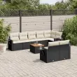 vidaXL Vrtna sedežna garnitura 9-delna z blazinami črn poli ratan