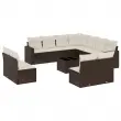 vidaXL Vrtna sedežna garnitura 12-delna z blazinami rjava poli ratan