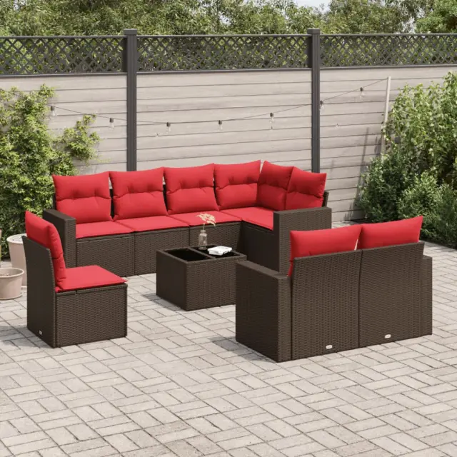vidaXL Vrtna sedežna garnitura 9-delna z blazinami rjava poli ratan