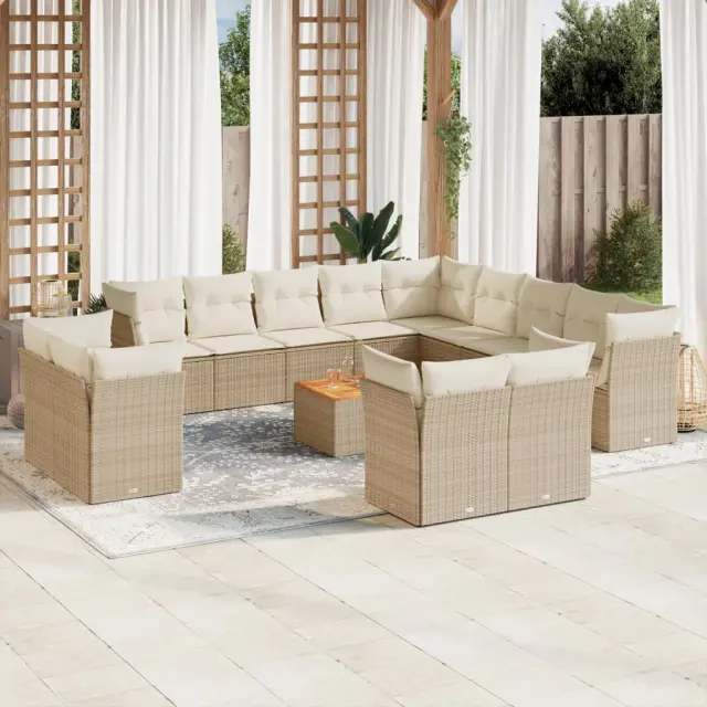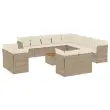 vidaXL Vrtna sedežna garnitura 14-delna z blazinami bež poli ratan