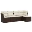 vidaXL Vrtna sedežna garnitura 5-delna z blazinami rjav poli ratan