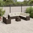 vidaXL Vrtna sedežna garnitura 10-delna z blazinami rjava poli ratan