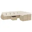 vidaXL Vrtna sedežna garnitura 10-delna z blazinami bež poli ratan
