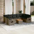 vidaXL Vrtna sedežna garnitura 10-delna z blazinami siv poli ratan