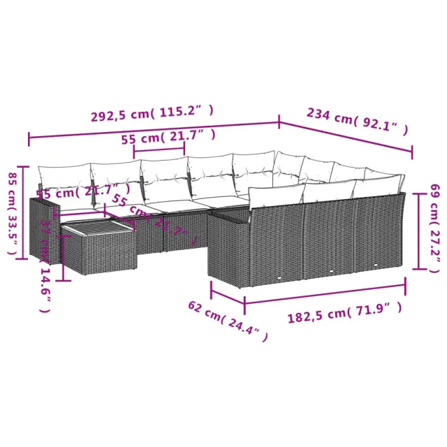 Ta vrtna sedežna garnitura je popoln dodatek za vaše dvorišče, teraso ali verando, saj zagotavlja udoben in vabljiv prostor za klepet z družino in prijatelji ali preprosto za sprostitev in uživanje na prostem.