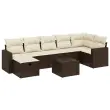 Ta vrtna sedežna garnitura je popoln dodatek za vaše dvorišče, teraso ali verando, saj zagotavlja udoben in vabljiv prostor za klepet z družino in prijatelji ali preprosto za sprostitev in uživanje na prostem. Vzdržljiv material: PE ratan, znan tudi kot poli ratan, je močan sintetični material, ki zahteva malo vzdrževanja in je videti kot naravni ratan. Je lahek, enostaven za čiščenje in se zaradi svoje vzdržljivosti in odpornosti na vremenske vplive pogosto uporablja za zunanje pohištvo.Steklena mizna plošča: Površina zunanje mize je izdelana iz močnega in trpežnega kaljenega stekla, kar omogoča enostavno čiščenje z vlažno krpo in vašemu zunanjemu prostoru doda pridih elegance.Prevleko je mogoče odstraniti in oprati: Te sedežne blazine imajo odstranljive prevleke za lažje pranje in vzdrževanje.Robusten in stabilen okvir: Prašno barvan jekleni okvir zagotavlja, da je vrtno pohištvo močno in stabilno za vsakodnevno uporabo na prostem.Modularna zasnova: Ta komplet zunanjega pohištva ima modularno zasnovo, zaradi česar je popolnoma prilagodljiv in enostaven za premikanje, tako da lahko zunanjo garnituro postavite kakor koli želite. Dobro je vedeti:Če želite, da vaše zunanje pohištvo ostane lepo, vam priporočamo, da ga zaščitite z vodoodporno prevleko.Maksimalna nosilnost (na sedež): 110 kgUV-odpornoPotrebno sestavljanje: DaKotni sedež:Barva: RjavaMaterial: PE ratan, jeklen okvir s prašnim premazomDimenzije: 62 x 62 x 69 cm (Š x G x V)Velikost sedeža: 55 x 55 cm (Š x G)Višina sedeža, merjena od tal: 37 cmSrednji sedež:Barva: RjavaMaterial: PE ratan, jeklen okvir s prašnim premazomDimenzije: 55 x 62 x 69 cm (Š x G x V)Velikost sedeža: 55 x 55 cm (Š x G)Višina sedeža, merjena od tal: 37 cmKavč z naslonjali za roke:Barva: RjavaMaterial: PE ratan, jeklen okvir s prašnim premazomDimenzije: 65,5 x 62 x 69 cm (Š x G x V)Velikost sedeža: 55 x 55 cm (Š x G)Višina sedeža, merjena od tal: 37 cmVišina naslonjal za roke od tal: 55 cmStolček za noge:Barva: RjavaMaterial: PE ratan, jeklen okvir s prašnim premazomDimenzije: 55 x 55 x 37 cm (Š x G x V)Velikost sedeža: 55 x 55 cm (Š x G)Višina sedeža, merjena od tal: 37 cmMiza:Barva: RjavaMaterial: PE ratan, jeklo s prašnim premazom, kaljeno stekloDimenzije: 55 x 55 x 37 cm (D x Š x V)Blazina:Barva: Kremno belaMaterial prevleke: Tkanina (100 % poliester)Polnilo sedežne blazine: PenaPolnilo hrbtne blazine: bombažna vlaknaDimenzije sedežne blazine: 55 x 55 x 3 cm (Š x G x D)Dimenzije hrbtne blazine: 55 x 45 x 13 cm (D x Š x D)Paket vsebuje:1 x Kotni sedež3 x Srednji sedež2 x Kavč z naslonjali za roke1 x Stolček za noge1 x Vrtna miza8 x Blazina za hrbet7 x Sedežna blazina s snemljivo in pralno prevleko 3263519