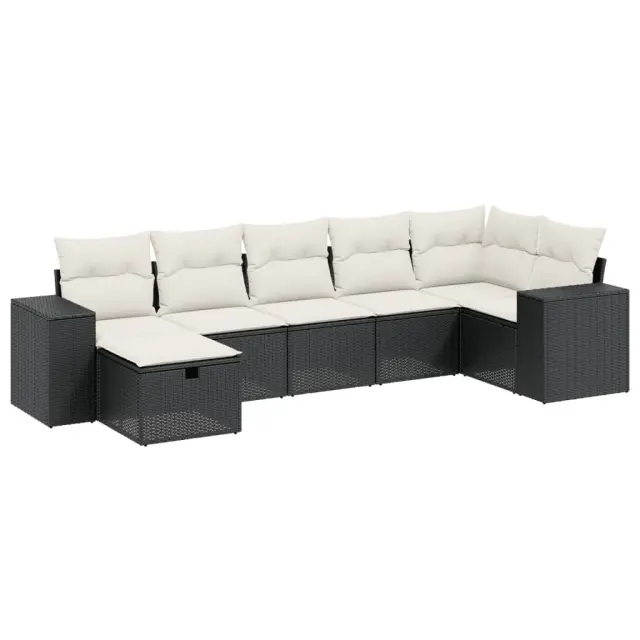 Ta vrtna sedežna garnitura je popoln dodatek za vaše dvorišče, teraso ali verando, saj zagotavlja udoben in vabljiv prostor za klepet z družino in prijatelji ali preprosto za sprostitev in uživanje na prostem. Vzdržljiv material: PE ratan, znan tudi kot poli ratan, je močan sintetični material, ki zahteva malo vzdrževanja in je videti kot naravni ratan. Je lahek, enostaven za čiščenje in se zaradi svoje vzdržljivosti in odpornosti na vremenske vplive pogosto uporablja za zunanje pohištvo.Udobno sedenje: To zunanje pohištvo z debelo oblazinjenimi blazinami zagotavlja udobno sedenje.Prevleko je mogoče odstraniti in oprati: Te sedežne blazine imajo odstranljive prevleke za lažje pranje in vzdrževanje.Robusten in stabilen okvir: Prašno barvan jekleni okvir zagotavlja, da je vrtno pohištvo močno in stabilno za vsakodnevno uporabo na prostem.Modularna zasnova: Ta komplet zunanjega pohištva ima modularno zasnovo, zaradi česar je popolnoma prilagodljiv in enostaven za premikanje, tako da lahko zunanjo garnituro postavite kakor koli želite. Dobro je vedeti:Če želite, da vaše zunanje pohištvo ostane lepo, vam priporočamo, da ga zaščitite z vodoodporno prevleko.Maksimalna nosilnost (na sedež): 110 kgUV-odpornoPotrebno sestavljanje: DaKotni sedež:Barva: ČrnaMaterial: PE ratan, jeklen okvir s prašnim premazomDimenzije: 62 x 62 x 69 cm (Š x G x V)Velikost sedeža: 55 x 55 cm (Š x G)Višina sedeža, merjena od tal: 37 cmSrednji sedež:Barva: ČrnaMaterial: PE ratan, jeklen okvir s prašnim premazomDimenzije: 55 x 62 x 69 cm (Š x G x V)Velikost sedeža: 55 x 55 cm (Š x G)Višina sedeža, merjena od tal: 37 cmKavč z naslonjali za roke:Barva: ČrnaMaterial: PE ratan, jeklen okvir s prašnim premazomDimenzije: 83 x 62 x 69 cm (Š x G x V)Velikost sedeža: 55 x 55 cm (Š x G)Višina sedeža, merjena od tal: 37 cmVišina naslonjal za roke od tal: 55 cmStolček za noge:Barva: ČrnaMaterial: PE ratan, jeklen okvir s prašnim premazomDimenzije: 55 x 55 x 37 cm (Š x G x V)Velikost sedeža: 55 x 55 cm (Š x G)Višina sedeža, merjena od tal: 37 cmBlazina:Barva: Kremno belaMaterial prevleke: Tkanina (100 % poliester)Polnilo sedežne blazine: PenaPolnilo hrbtne blazine: bombažna vlaknaDimenzije sedežne blazine: 55 x 55 x 3 cm (Š x G x D)Dimenzije hrbtne blazine: 55 x 45 x 13 cm (D x Š x D)Paket vsebuje:1 x Kotni sedež3 x Srednji sedež2 x Kavč z naslonjali za roke1 x Stolček za noge8 x Blazina za hrbet7 x Sedežna blazina s snemljivo in pralno prevleko 3264432