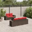 vidaXL Vrtna sedežna garnitura 6-delna z blazinami rjav poli ratan