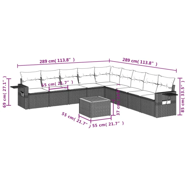Ta vrtna sedežna garnitura je popoln dodatek za vaše dvorišče, teraso ali verando, saj zagotavlja udoben in vabljiv prostor za klepet z družino in prijatelji ali preprosto za sprostitev in uživanje na prostem.