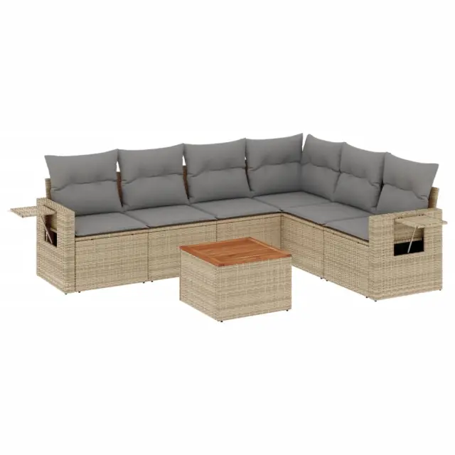 vidaXL Vrtna sedežna garnitura 7-delna z blazinami bež poli ratan