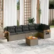 Ta vrtna sedežna garnitura je popoln dodatek za vaše dvorišče, teraso ali verando, saj zagotavlja udoben in vabljiv prostor za klepet z družino in prijatelji ali preprosto za sprostitev in uživanje na prostem. Vzdržljiv material: PE ratan, znan tudi kot poli ratan, je močan sintetični material, ki zahteva malo vzdrževanja in je videti kot naravni ratan. Je lahek, enostaven za čiščenje in se zaradi svoje vzdržljivosti in odpornosti na vremenske vplive pogosto uporablja za zunanje pohištvo.Stabilna mizna plošča, ki je enostavna za čiščenje: Ta vrtna miza ima ploščo iz akacijevega lesa, ki je čvrsta, vzdržljiva in jo je enostavno čistiti z vlažno krpo.Priročna stranska mizica: To zunanje pohištvo ima zložljivo stransko mizico s pnevmatsko vzmetjo na naslonjalih za roke, ki zagotavlja priročen prostor za shranjevanje potrebščin na dosegu roke.Prevleko je mogoče odstraniti in oprati: Te sedežne blazine imajo odstranljive prevleke za lažje pranje in vzdrževanje.Modularna zasnova: Ta komplet zunanjega pohištva ima modularno zasnovo, zaradi česar je popolnoma prilagodljiv in enostaven za premikanje, tako da lahko zunanjo garnituro postavite kakor koli želite. Dobro je vedeti:Če želite, da vaše zunanje pohištvo ostane lepo, vam priporočamo, da ga zaščitite z vodoodporno prevleko.Maksimalna nosilnost (na sedež): 110 kgUV-odpornoPlastične nastavljive nogePotrebno sestavljanje: DaKotni sedež:Barva: SivaMaterial: PE ratan, jeklen okvir s prašnim premazomDimenzije: 62 x 62 x 69 cm (Š x G x V)Velikost sedeža: 55 x 55 cm (Š x G)Višina sedeža, merjena od tal: 37 cmSrednji sedež:Barva: SivaMaterial: PE ratan, jeklen okvir s prašnim premazomDimenzije: 55 x 62 x 69 cm (Š x G x V)Velikost sedeža: 55 x 55 cm (Š x G)Višina sedeža, merjena od tal: 37 cmKavč z naslonjali za roke:Barva: SivaMaterial: PE ratan, prašno premazano jeklo, trden akacijev les z oljnim premazomDimenzije: 62/85 x 62 x 69 cm (Š x G x V)Velikost sedeža: 55 x 55 cm (Š x G)Višina sedeža, merjena od tal: 37 cmVišina naslonjal za roke od tal: 55 cmŠirina naslonjala za roke: 6 cmVelikost stranske mizice: 24,5 x 23,5 cm (D × Š)Miza:Barva: SivaMaterial: PE ratan, prašno premazano jeklo, trden akacijev les z oljnim premazomDimenzije: 55 x 55 x 37 cm (D x Š x V)Blazina:Barva: Temno sivaMaterial prevleke: Tkanina (100 % poliester)Polnilo sedežne blazine: PenaPolnilo hrbtne blazine: bombažna vlaknaDimenzije sedežne blazine: 55 x 55 x 3 cm (Š x G x D)Dimenzije hrbtne blazine: 55 x 45 x 13 cm (D x Š x D)Paket vsebuje:1 x Kotni sedež3 x Srednji sedež2 x Kavč z naslonjali za roke1 x Miza7 x Hrbtna blazina6 x Sedežna blazina s snemljivo pralno prevleko 3226837