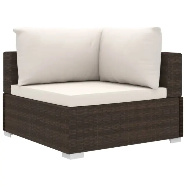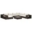 vidaXL Vrtna sedežna garnitura z blazinami 10-delna poli ratan rjava