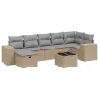 vidaXL Vrtna sedežna garnitura 8-delna z blazinami bež poli ratan