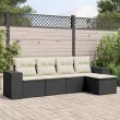 vidaXL Vrtna sedežna garnitura 5-delna z blazinami črn poli ratan