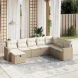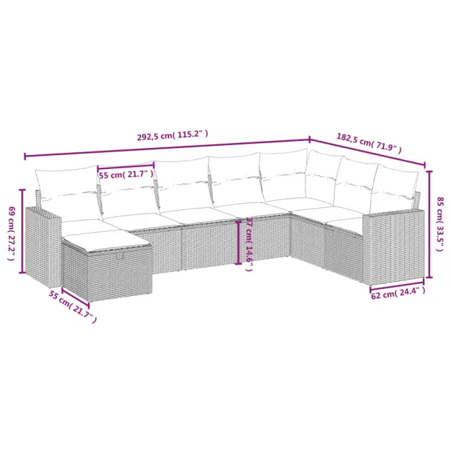 Ta vrtna sedežna garnitura je popoln dodatek za vaše dvorišče, teraso ali verando, saj zagotavlja udoben in vabljiv prostor za klepet z družino in prijatelji ali preprosto za sprostitev in uživanje na prostem. Vzdržljiv material: PE ratan, znan tudi kot poli ratan, je močan sintetični material, ki zahteva malo vzdrževanja in je videti kot naravni ratan. Je lahek, enostaven za čiščenje in se zaradi svoje vzdržljivosti in odpornosti na vremenske vplive pogosto uporablja za zunanje pohištvo.Udobno sedenje: To zunanje pohištvo z debelo oblazinjenimi blazinami zagotavlja udobno sedenje.Prevleko je mogoče odstraniti in oprati: Te sedežne blazine imajo odstranljive prevleke za lažje pranje in vzdrževanje.Robusten in stabilen okvir: Prašno barvan jekleni okvir zagotavlja, da je vrtno pohištvo močno in stabilno za vsakodnevno uporabo na prostem.Modularna zasnova: Ta komplet zunanjega pohištva ima modularno zasnovo, zaradi česar je popolnoma prilagodljiv in enostaven za premikanje, tako da lahko zunanjo garnituro postavite kakor koli želite. Dobro je vedeti:Če želite, da vaše zunanje pohištvo ostane lepo, vam priporočamo, da ga zaščitite z vodoodporno prevleko.Maksimalna nosilnost (na sedež): 110 kgUV-odpornoPotrebno sestavljanje: DaKotni sedež:Barva: BežMaterial: PE ratan, jeklen okvir s prašnim premazomDimenzije: 62 x 62 x 69 cm (Š x G x V)Velikost sedeža: 55 x 55 cm (Š x G)Višina sedeža, merjena od tal: 37 cmSrednji sedež:Barva: BežMaterial: PE ratan, jeklen okvir s prašnim premazomDimenzije: 55 x 62 x 69 cm (Š x G x V)Velikost sedeža: 55 x 55 cm (Š x G)Višina sedeža, merjena od tal: 37 cmKavč z naslonjali za roke:Barva: BežMaterial: PE ratan, jeklen okvir s prašnim premazomDimenzije: 65,5 x 62 x 69 cm (Š x G x V)Velikost sedeža: 55 x 55 cm (Š x G)Višina sedeža, merjena od tal: 37 cmVišina naslonjal za roke od tal: 55 cmStolček za noge:Barva: BežMaterial: PE ratan, jeklen okvir s prašnim premazomDimenzije: 55 x 55 x 37 cm (Š x G x V)Velikost sedeža: 55 x 55 cm (Š x G)Višina sedeža, merjena od tal: 37 cmBlazina:Barva: Kremno belaMaterial prevleke: Tkanina (100 % poliester)Polnilo sedežne blazine: PenaPolnilo hrbtne blazine: bombažna vlaknaDimenzije sedežne blazine: 55 x 55 x 3 cm (Š x G x D)Dimenzije hrbtne blazine: 55 x 45 x 13 cm (D x Š x D)Paket vsebuje:1 x Kotni sedež4 x Srednji sedež2 x Kavč z naslonjali za roke1 x Stolček za noge9 x Blazina za hrbet8 x Sedežna blazina s snemljivo in pralno prevleko 3263584
