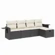 Ta vrtna sedežna garnitura je popoln dodatek za vaše dvorišče, teraso ali verando, saj zagotavlja udoben in vabljiv prostor za klepet z družino in prijatelji ali preprosto za sprostitev in uživanje na prostem. Vzdržljiv material: PE ratan, znan tudi kot poli ratan, je močan sintetični material, ki zahteva malo vzdrževanja in je videti kot naravni ratan. Je lahek, enostaven za čiščenje in se zaradi svoje vzdržljivosti in odpornosti na vremenske vplive pogosto uporablja za zunanje pohištvo.Udobno sedenje: To zunanje pohištvo z debelo oblazinjenimi blazinami zagotavlja udobno sedenje.Prevleko je mogoče odstraniti in oprati: Te sedežne blazine imajo odstranljive prevleke za lažje pranje in vzdrževanje.Robusten in stabilen okvir: Prašno barvan jekleni okvir zagotavlja, da je vrtno pohištvo močno in stabilno za vsakodnevno uporabo na prostem.Modularna zasnova: Ta komplet zunanjega pohištva ima modularno zasnovo, zaradi česar je popolnoma prilagodljiv in enostaven za premikanje, tako da lahko zunanjo garnituro postavite kakor koli želite. Dobro je vedeti:Če želite, da vaše zunanje pohištvo ostane lepo, vam priporočamo, da ga zaščitite z vodoodporno prevleko.Maksimalna nosilnost (na sedež): 110 kgUV-odpornoPotrebno sestavljanje: DaSrednji sedež:Barva: ČrnaMaterial: PE ratan, jeklen okvir s prašnim premazomDimenzije: 55 x 62 x 69 cm (Š x G x V)Velikost sedeža: 55 x 55 cm (Š x G)Višina sedeža, merjena od tal: 37 cmKavč z naslonjali za roke:Barva: ČrnaMaterial: PE ratan, jeklen okvir s prašnim premazomDimenzije: 61,5 x 62 x 69 cm (Š x G x V)Velikost sedeža: 55 x 55 cm (Š x G)Višina sedeža, merjena od tal: 37 cmVišina naslonjal za roke od tal: 55 cmStolček za noge:Barva: ČrnaMaterial: PE ratan, jeklen okvir s prašnim premazomDimenzije: 55 x 55 x 37 cm (Š x G x V)Velikost sedeža: 55 x 55 cm (Š x G)Višina sedeža, merjena od tal: 37 cmBlazina:Barva: Kremno belaMaterial prevleke: Tkanina (100 % poliester)Polnilo sedežne blazine: PenaPolnilo hrbtne blazine: bombažna vlaknaDimenzije sedežne blazine: 55 x 55 x 3 cm (Š x G x D)Dimenzije hrbtne blazine: 55 x 45 x 13 cm (D x Š x D)Paket vsebuje:2 x Sredinski sedež2 x Kavč z naslonjali za roke1 x Stolček za noge5 x Blazina za hrbet5 x Sedežna blazina s snemljivo pralno prevleko 3263772