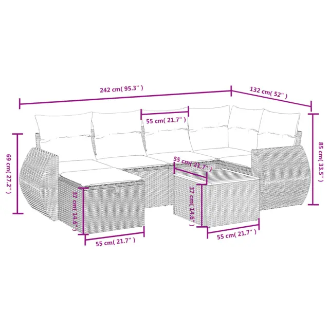 vidaXL Vrtna sedežna garnitura 7-delna z blazinami bež poli ratan