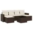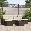 vidaXL Vrtna sedežna garnitura 7-delna z blazinami rjav poli ratan