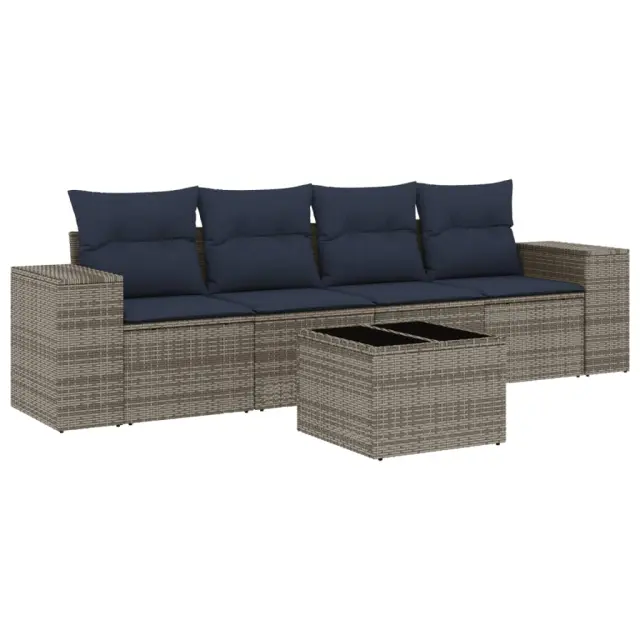 vidaXL Vrtna sedežna garnitura 5-delna z blazinami siv poli ratan