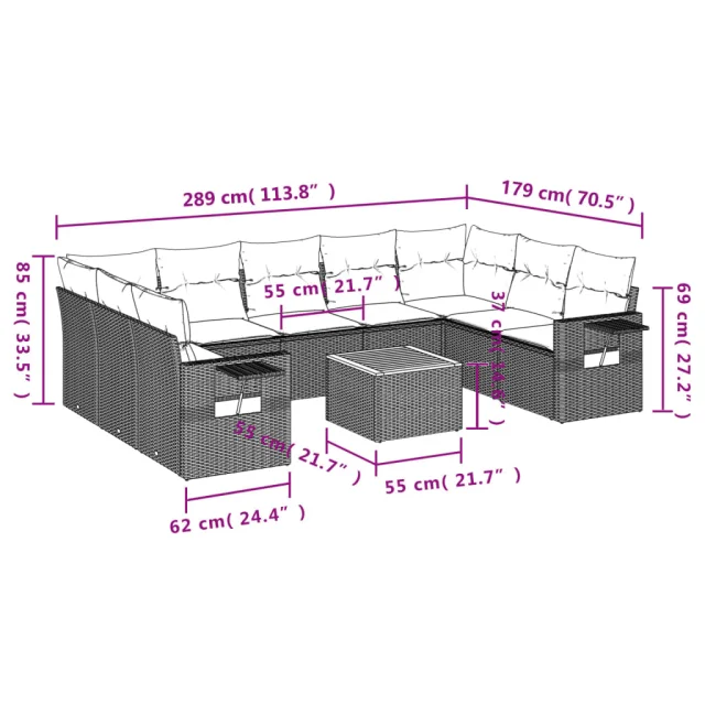 Ta vrtna sedežna garnitura je popoln dodatek za vaše dvorišče, teraso ali verando, saj zagotavlja udoben in vabljiv prostor za klepet z družino in prijatelji ali preprosto za sprostitev in uživanje na prostem.