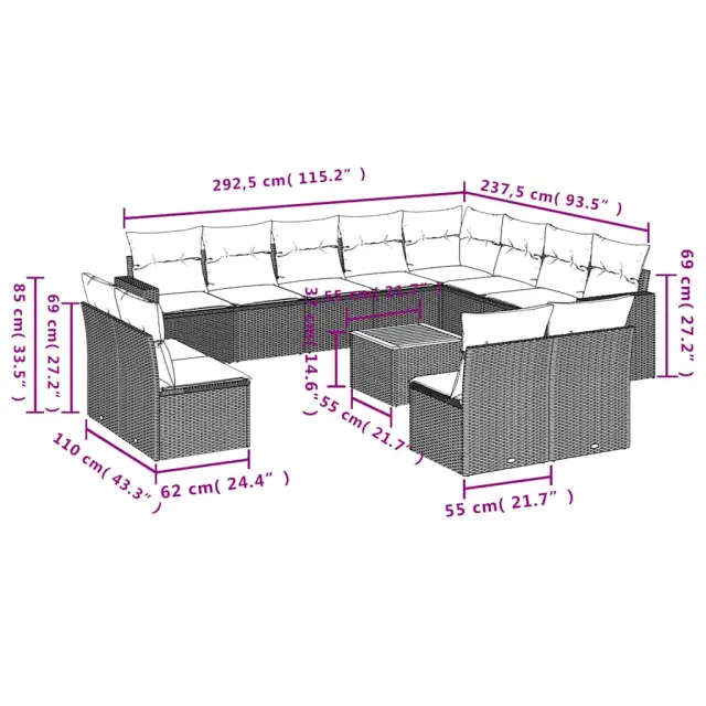 Ta vrtna sedežna garnitura je popoln dodatek za vaše dvorišče, teraso ali verando, saj zagotavlja udoben in vabljiv prostor za klepet z družino in prijatelji ali preprosto za sprostitev in uživanje na prostem.