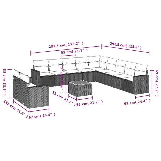 Ta vrtna sedežna garnitura je popoln dodatek za vaše dvorišče, teraso ali verando, saj zagotavlja udoben in vabljiv prostor za klepet z družino in prijatelji ali preprosto za sprostitev in uživanje na prostem.