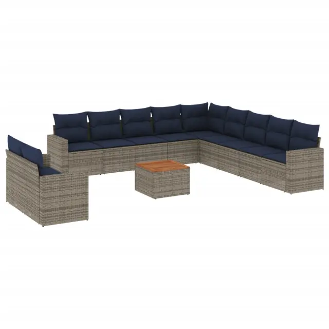 vidaXL Vrtna sedežna garnitura 12-delna z blazinami siv poli ratan