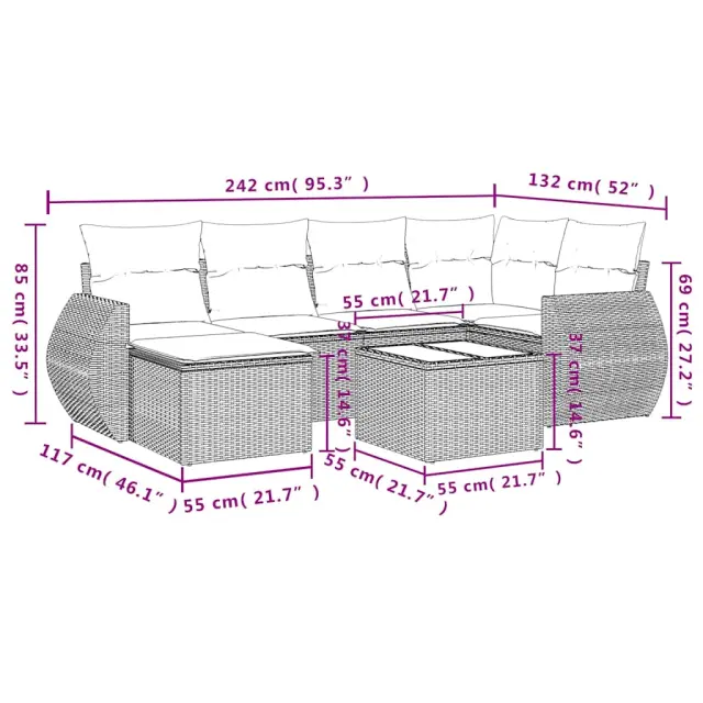 Ta vrtna sedežna garnitura je popoln dodatek za vaše dvorišče, teraso ali verando, saj zagotavlja udoben in vabljiv prostor za klepet z družino in prijatelji ali preprosto za sprostitev in uživanje na prostem.
