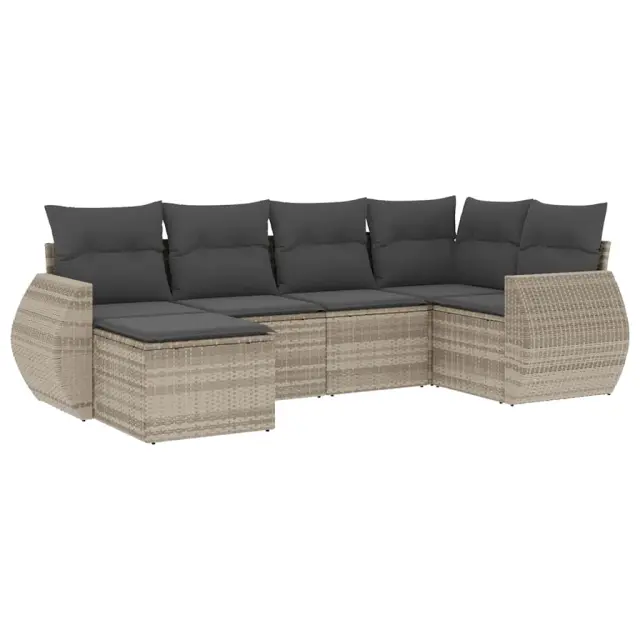 vidaXL Vrtna sedežna garnitura 6-delna z blazinami siv poli ratan