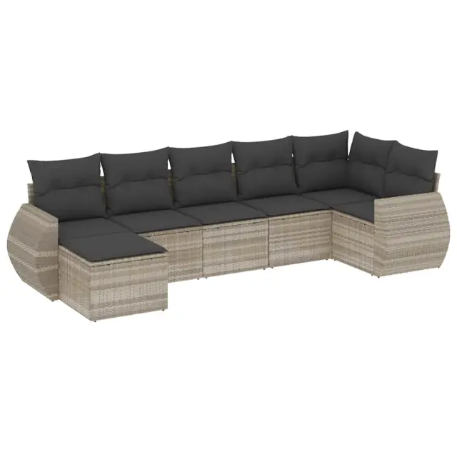 vidaXL Vrtna sedežna garnitura 7-delna z blazinami siv poli ratan