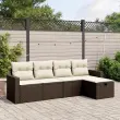 Ta vrtna sedežna garnitura je popoln dodatek za vaše dvorišče, teraso ali verando, saj zagotavlja udoben in vabljiv prostor za klepet z družino in prijatelji ali preprosto za sprostitev in uživanje na prostem. Vzdržljiv material: PE ratan, znan tudi kot poli ratan, je močan sintetični material, ki zahteva malo vzdrževanja in je videti kot naravni ratan. Je lahek, enostaven za čiščenje in se zaradi svoje vzdržljivosti in odpornosti na vremenske vplive pogosto uporablja za zunanje pohištvo.Udobno sedenje: To zunanje pohištvo z debelo oblazinjenimi blazinami zagotavlja udobno sedenje.Prevleko je mogoče odstraniti in oprati: Te sedežne blazine imajo odstranljive prevleke za lažje pranje in vzdrževanje.Robusten in stabilen okvir: Prašno barvan jekleni okvir zagotavlja, da je vrtno pohištvo močno in stabilno za vsakodnevno uporabo na prostem.Modularna zasnova: Ta komplet zunanjega pohištva ima modularno zasnovo, zaradi česar je popolnoma prilagodljiv in enostaven za premikanje, tako da lahko zunanjo garnituro postavite kakor koli želite. Dobro je vedeti:Če želite, da vaše zunanje pohištvo ostane lepo, vam priporočamo, da ga zaščitite z vodoodporno prevleko.Maksimalna nosilnost (na sedež): 110 kgUV-odpornoPotrebno sestavljanje: DaSrednji sedež:Barva: RjavaMaterial: PE ratan, jeklen okvir s prašnim premazomDimenzije: 55 x 62 x 69 cm (Š x G x V)Velikost sedeža: 55 x 55 cm (Š x G)Višina sedeža, merjena od tal: 37 cmKavč z naslonjali za roke:Barva: RjavaMaterial: PE ratan, jeklen okvir s prašnim premazomDimenzije: 65,5 x 62 x 69 cm (Š x G x V)Velikost sedeža: 55 x 55 cm (Š x G)Višina sedeža, merjena od tal: 37 cmVišina naslonjal za roke od tal: 55 cmStolček za noge:Barva: RjavaMaterial: PE ratan, jeklen okvir s prašnim premazomDimenzije: 55 x 55 x 37 cm (Š x G x V)Velikost sedeža: 55 x 55 cm (Š x G)Višina sedeža, merjena od tal: 37 cmBlazina:Barva: Kremno belaMaterial prevleke: Tkanina (100 % poliester)Polnilo sedežne blazine: PenaPolnilo hrbtne blazine: bombažna vlaknaDimenzije sedežne blazine: 55 x 55 x 3 cm (Š x G x D)Dimenzije hrbtne blazine: 55 x 45 x 13 cm (D x Š x D)Paket vsebuje:2 x Srednji kavč s funkcijo shranjevanja z vodoodporno vrečo2 x Kavč s funkcijo shranjevanja z vodoodporno vrečo1 x Stolček za noge s funkcijo shranjevanja z vodoodporno vrečo5 x Blazina za hrbet5 x Sedežna blazina s snemljivo pralno prevleko 3263469