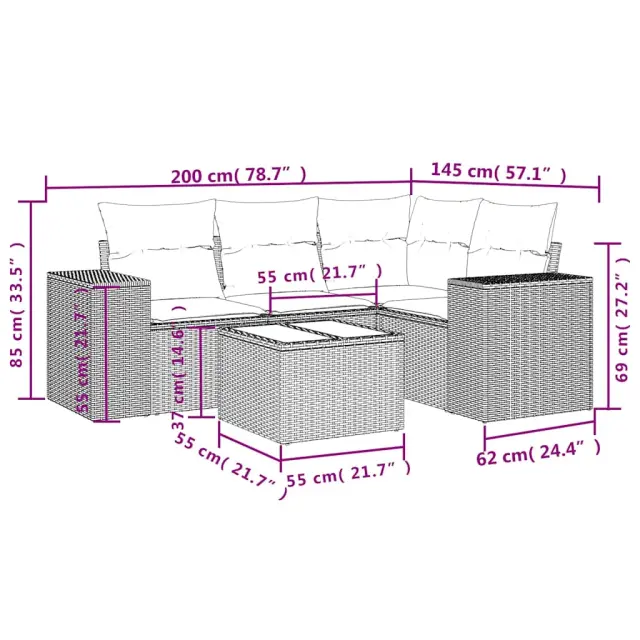 Ta vrtna sedežna garnitura je popoln dodatek za vaše dvorišče, teraso ali verando, saj zagotavlja udoben in vabljiv prostor za klepet z družino in prijatelji ali preprosto za sprostitev in uživanje na prostem.