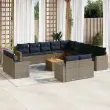 vidaXL Vrtna sedežna garnitura 14-delna z blazinami siv poli ratan
