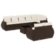 vidaXL Vrtna sedežna garnitura 9-delna z blazinami rjava poli ratan