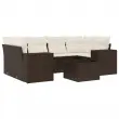 vidaXL Vrtna sedežna garnitura 7-delna z blazinami rjav poli ratan