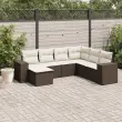 vidaXL Vrtna sedežna garnitura 7-delna z blazinami rjav poli ratan