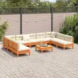 vidaXL Vrtna sedežna garnitura 10-delna z blazinami voščeno rjava