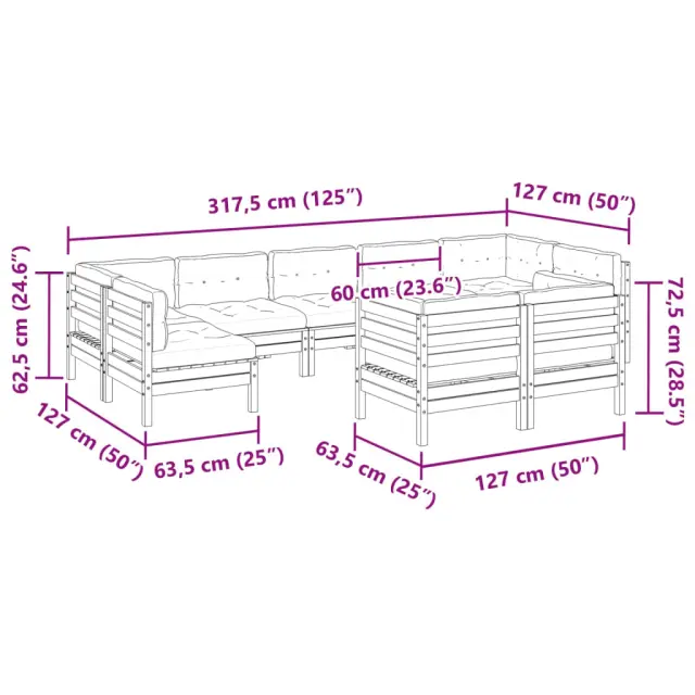 • Dimenzije blazine za sedež: 60 x 60 x 12 cm (D x Š x D)
