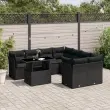 vidaXL Vrtna sedežna garnitura 9-delna z blazinami črn poli ratan
