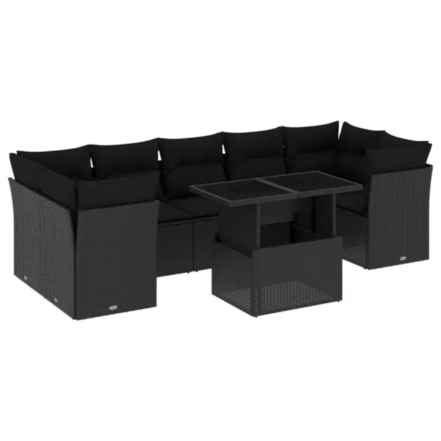Ta vrtna sedežna garnitura je popoln dodatek za vaše dvorišče, teraso ali verando, saj zagotavlja udoben in vabljiv prostor za klepet z družino in prijatelji ali preprosto za sprostitev in uživanje na prostem. Vzdržljiv material: PE ratan, znan tudi kot poli ratan, je močan sintetični material, ki zahteva malo vzdrževanja in je videti kot naravni ratan. Je lahek, enostaven za čiščenje in se zaradi svoje vzdržljivosti in odpornosti na vremenske vplive pogosto uporablja za zunanje pohištvo.Nastavljiva mizna plošča: Z dvigom mizne plošče lahko mizo povišate, s čimer se zunanja klubska mizica spremeni v jedilno mizo. Popolna je za sprejemanje gostov ali uživanje v obrokih na prostem.Udobno sedenje: To zunanje pohištvo z debelo oblazinjenimi blazinami zagotavlja udobno sedenje.Prevleko je mogoče odstraniti in oprati: Te sedežne blazine imajo odstranljive prevleke za lažje pranje in vzdrževanje.Modularna zasnova: Ta komplet zunanjega pohištva ima modularno zasnovo, zaradi česar je popolnoma prilagodljiv in enostaven za premikanje, tako da lahko zunanjo garnituro postavite kakor koli želite. Dobro je vedeti:Če želite, da vaše zunanje pohištvo ostane lepo, vam priporočamo, da ga zaščitite z vodoodporno prevleko.Maksimalna nosilnost (na sedež): 110 kgUV-odpornoPotrebno sestavljanje: DaKotni sedež:Barva: ČrnaMaterial: PE ratan, jeklen okvir s prašnim premazomDimenzije: 62 x 62 x 69 cm (Š x G x V)Velikost sedeža: 55 x 55 cm (Š x G)Višina sedeža, merjena od tal: 37 cmSrednji sedež:Barva: ČrnaMaterial: PE ratan, jeklen okvir s prašnim premazomDimenzije: 55 x 62 x 69 cm (Š x G x V)Velikost sedeža: 55 x 55 cm (Š x G)Višina sedeža, merjena od tal: 37 cmMiza:Barva: ČrnaMaterial: PE ratan, jeklo s prašnim premazom, kaljeno stekloDimenzije: 100 x 55 x 44/73 cm (D x Š x V)Blazina:Barva: Črna Material prevleke: Tkanina (100 % poliester)Polnilo sedežne blazine: PenaPolnilo hrbtne blazine: bombažna vlaknaDimenzije sedežne blazine: 55 x 55 x 3 cm (Š x G x D)Dimenzije hrbtne blazine: 55 x 45 x 13 cm (D x Š x D)Paket vsebuje:4 x Kotni sedež3 x Srednji sedež1 x Vrtna miza11 x Blazina za hrbet7 x Sedežna blazina s snemljivo in pralno prevleko 3266395