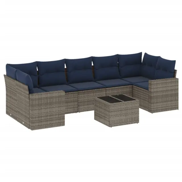 vidaXL Vrtna sedežna garnitura 8-delna z blazinami siv poli ratan