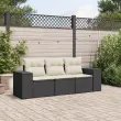 vidaXL Vrtna sedežna garnitura 3-delna z blazinami črn poli ratan