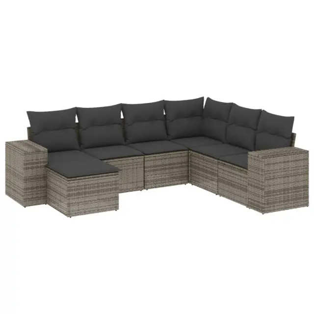 vidaXL Vrtna sedežna garnitura 7-delna z blazinami siv poli ratan