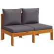 Ta vrtna sedežna garnitura je popoln dodatek za vaše dvorišče, teraso ali verando, saj zagotavlja udoben in vabljiv prostor za klepet z družino in prijatelji ali preprosto za sprostitev in uživanje na prostem. Material z dolgo življenjsko dobo: Trden akacijev les je čudovit naravni material. Akacijev les je tropski trden les, ki je gost, močan in vzdržljiv.Stabilna mizna plošča, ki je enostavna za čiščenje: Ta vrtna miza ima ploščo iz akacijevega lesa, ki je čvrsta, vzdržljiva in jo je enostavno čistiti z vlažno krpo.Udobno sedenje: To zunanje pohištvo z debelo oblazinjenimi blazinami zagotavlja udobno sedenje. Prevleko je mogoče odstraniti in oprati: Te sedežne blazine imajo odstranljive prevleke za lažje pranje in vzdrževanje.Modularna zasnova: Ta komplet zunanjega pohištva ima modularno zasnovo, zaradi česar je popolnoma prilagodljiv in enostaven za premikanje, tako da lahko zunanjo garnituro postavite kakor koli želite. Dobro je vedeti:Če želite, da vaše zunanje pohištvo ostane lepo, vam priporočamo, da ga zaščitite z vodoodporno prevleko.Maksimalna nosilnost (na sedež): 110 kgPotrebno sestavljanje: DaVrtni kavč dvosed:Material: Trden akacijev les z oljnim premazomDimenzije (z naslonom za roke): 114 x 68 x 64 cm (Š x G x V)Dimenzije (brez naslonov za roke): 106 x 68 x 64 cm (Š x G x V)Velikost sedeža: 106 x 66 cm (Š x G)Višina sedeža od tal (brez blazine): 27 cmVišina naslonjal za roke od tal: 55 cmKotni sedež:Material: Trden akacijev les z oljnim premazomDimenzije: 68 x 68 x 64 cm (Š x G x V)Velikost sedeža: 66 x 66 cm (Š x G)Višina sedeža od tal (brez blazine): 27 cmMiza:Material: Trden akacijev les z oljnim premazomDimenzije: 100 x 50 x 27 cm (D x Š x V)Blazina:Barva: Temno sivaMaterial prevleke: Tkanina (100 % poliester)Polnilo sedežne blazine: PenaPolnilo hrbtne blazine: bombažna vlaknaDimenzije sedežne blazine: 53/66 x 66 x 8 cm (Š x G x D)Dimenzije blazine za hrbet (L): 66 x 40 x 10 cm (D x Š x D)Dimenzije blazine za hrbet (S): 53 x 40 x 10 cm (D x Š x D)Paket vsebuje:3 x Vrtni kavč dvosed1 x Kotni sedež1 x Miza8 x Hrbtna blazina s snemljivo in pralno prevleko7 x Sedežna blazina s snemljivo in pralno prevleko 3214872